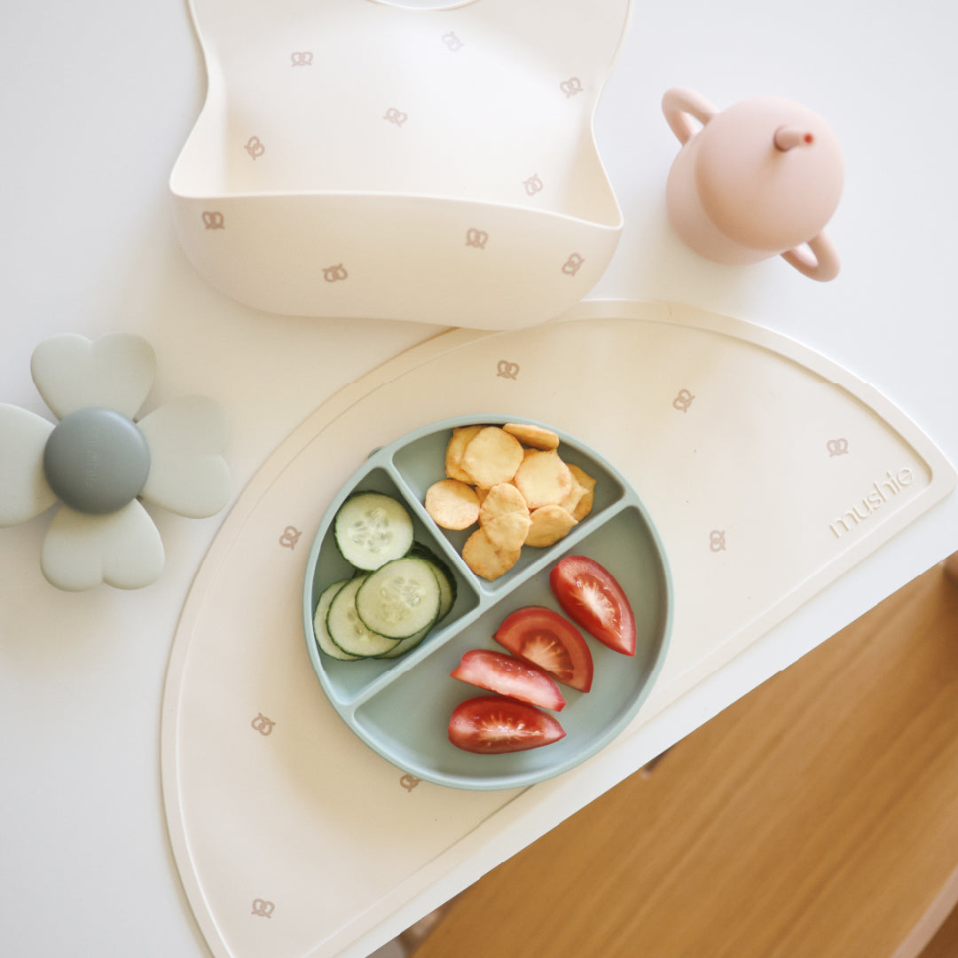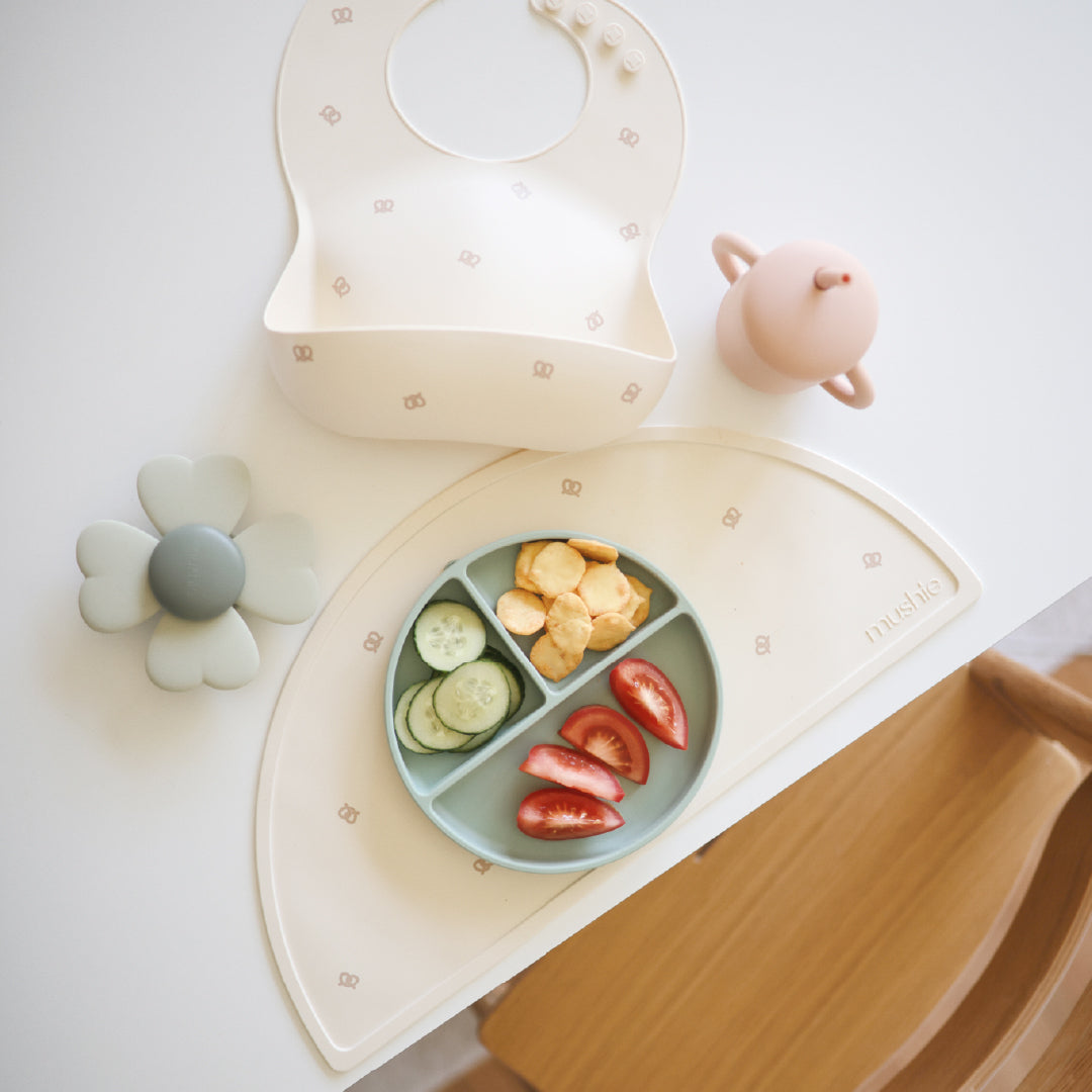 いつもの食卓がおしゃれで清潔に。食器を滑りにくくし汚れやキズからテーブルを守ってくれるスウェーデンでデザインされたmushie(ムシエ)のシリコンマット。