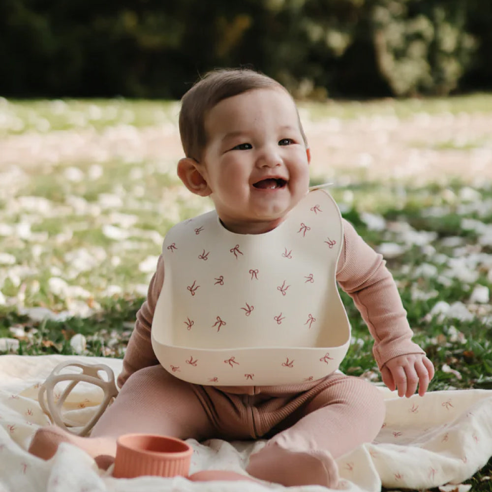 mushie(ムシエ)のシリコン製のベビーお食事エプロン。柔らかいシリコン素材なので体にフィットし食べこぼしもしっかりキャッチしてくれます。スウェーデンでデザインされたおしゃれでお手入れが簡単なのでお出かけの時にも持って行きたくなるお食事エプロンです。