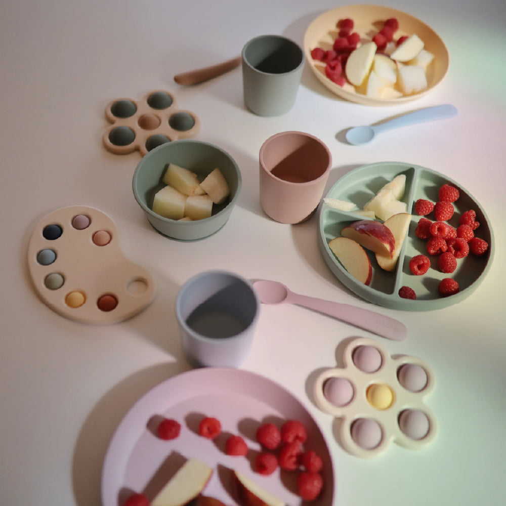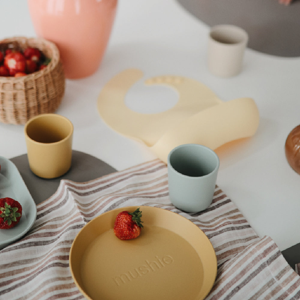 mushie(ムシエ)のお食事アイテムとのコーディネートがしやすいようにシンプルでエレガントなデザイン。食器洗浄機と電子レンジにも対応しているので食事の準備と後片付けも簡単。