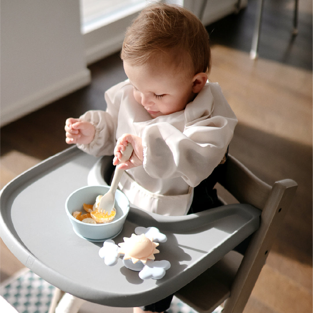 mushie(ムシエ)のロングスリーブビブは、袖付きタイプでお洋服をしっかりガード。