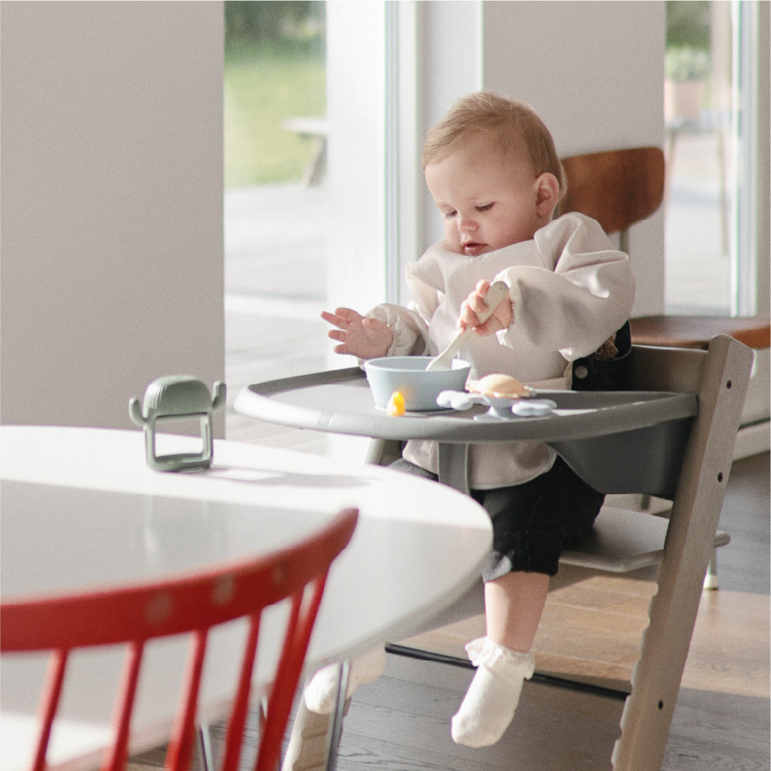 mushie(ムシエ)のロングスリーブビブは、袖付きタイプでお洋服をしっかりガード。