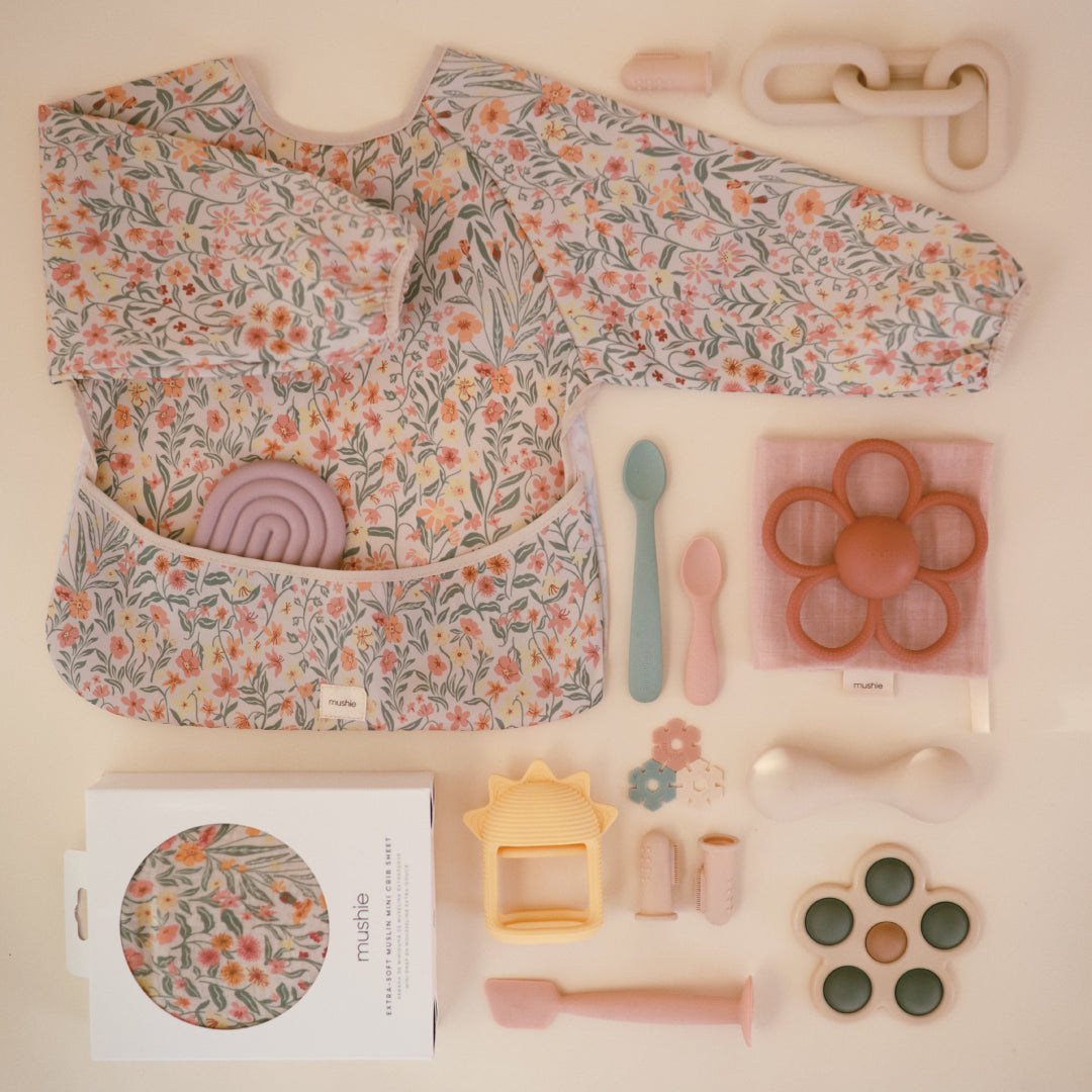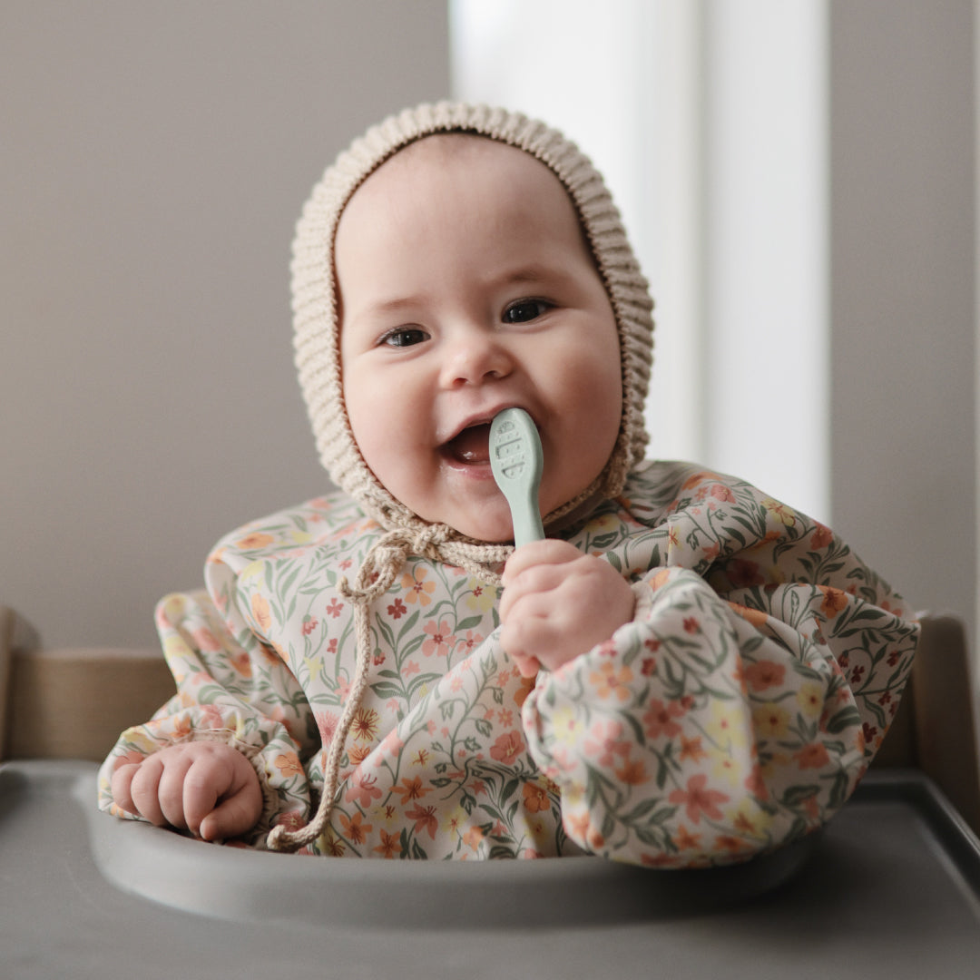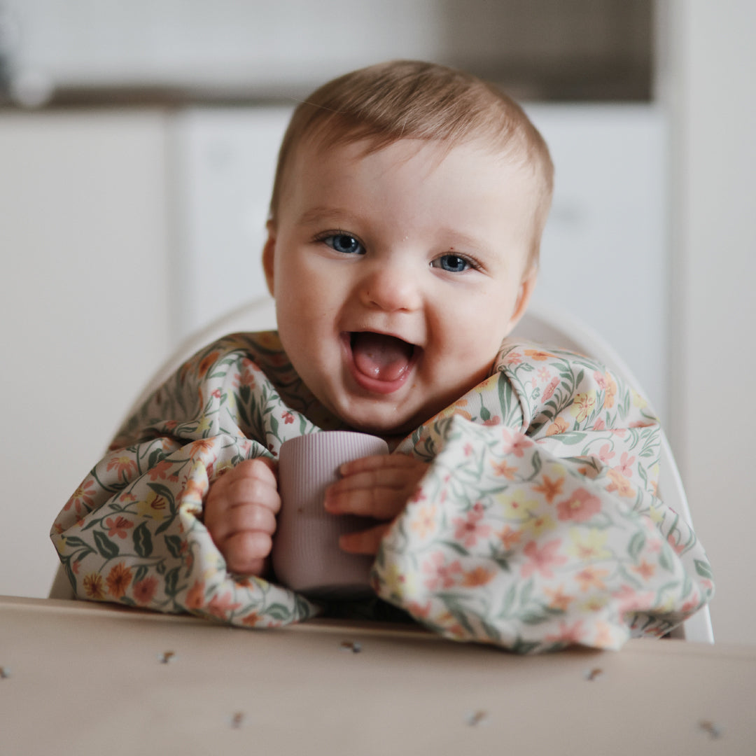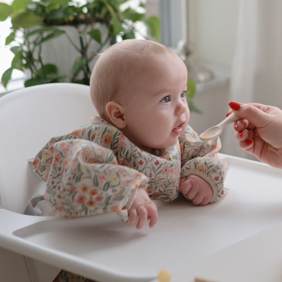mushie(ムシエ)のロングスリーブビブは、袖付きタイプでお洋服をしっかりガード。