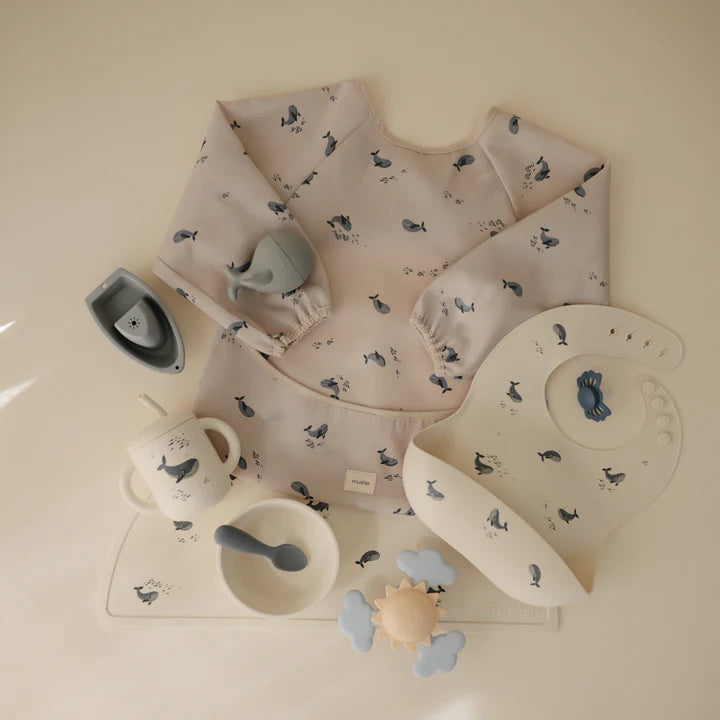 mushie(ムシエ)のロングスリーブビブは、袖付きタイプでお洋服をしっかりガード。