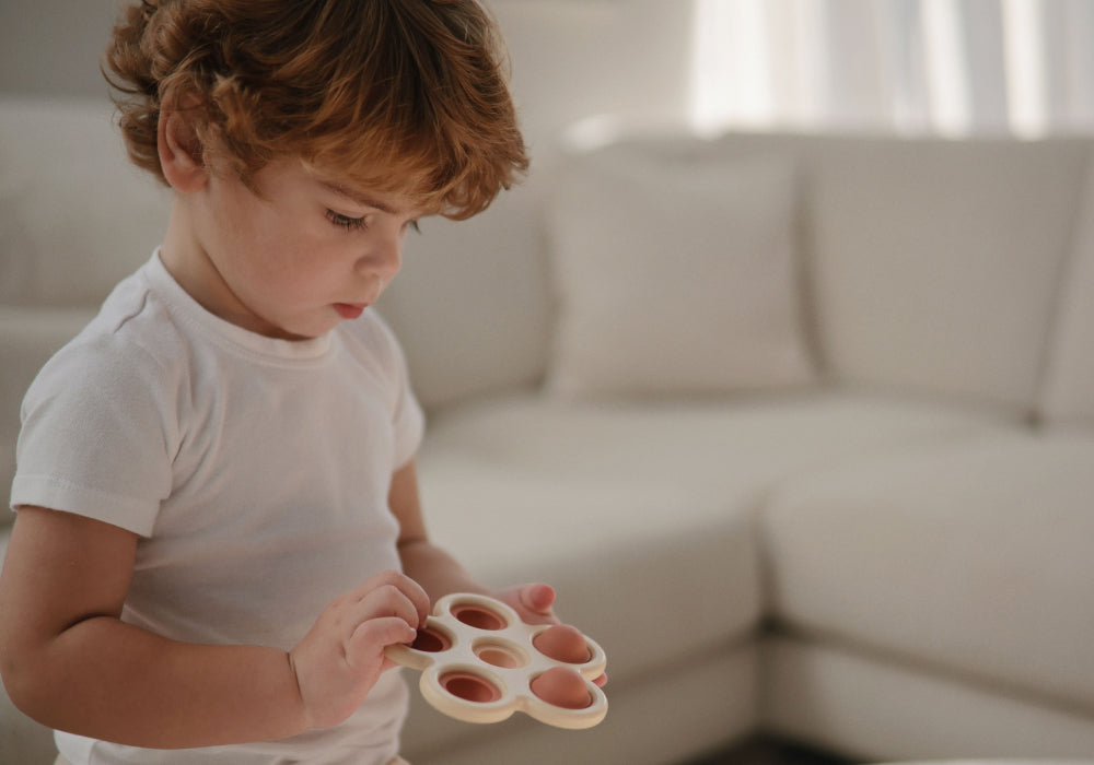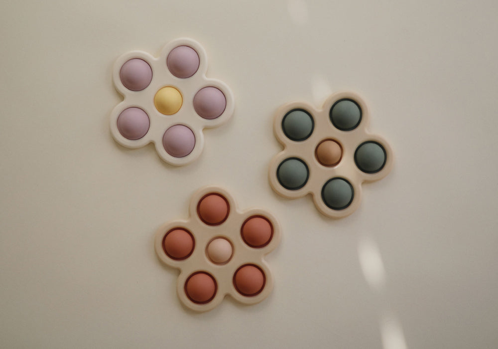 丸いシリコンの部分を押すとやさしく弾ける音が鳴って楽しい。押すのが楽しいおもちゃ、安心安全の食品グレードシリコンでできているので、お子様が口に含んだり、舐めてしまっても大丈夫。シリコンなので握りやすく思いっきり遊べ学べます。
