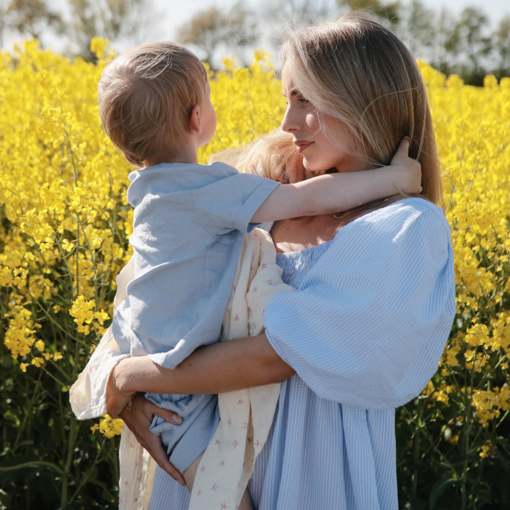 北欧デザインのモスリン製スワドルでお昼寝タイムがもっと心地良くなります。
