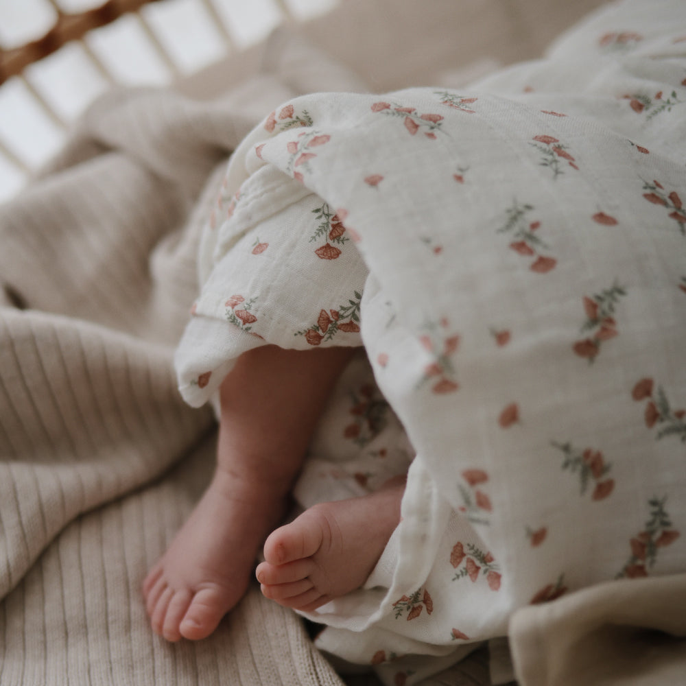 北欧デザインのモスリン製スワドルでお昼寝タイムがもっと心地良くなります。
