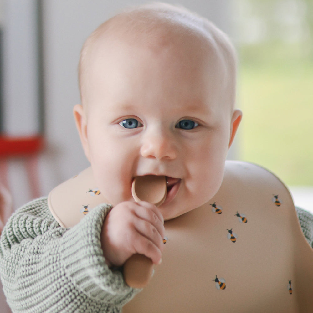 柔らかいシリコン素材でできているので、赤ちゃんの敏感な歯茎や生えかけの歯に優しい。食品グレードシリコンだから安心安全の品質です。